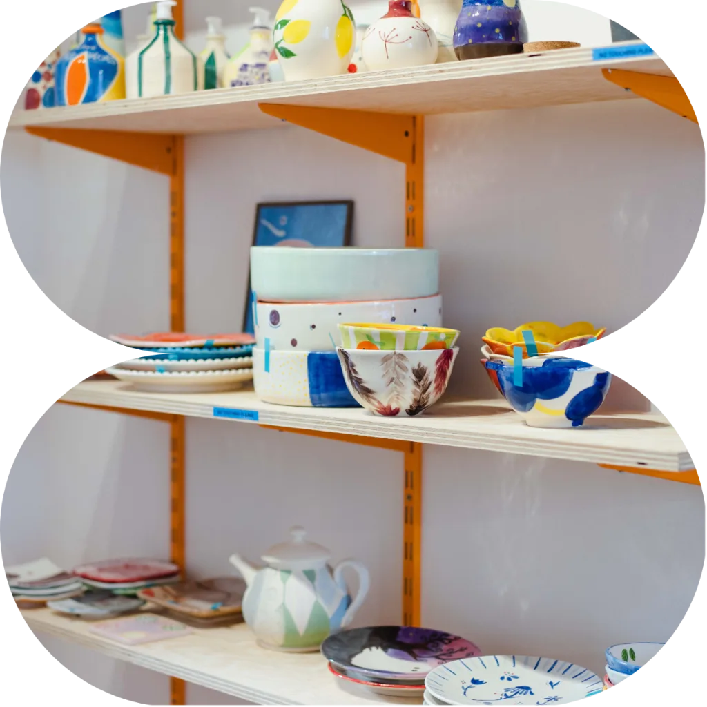 Nous proposons une large sélection de céramiques : tasses, bols, assiettes, vases, petites figurines…